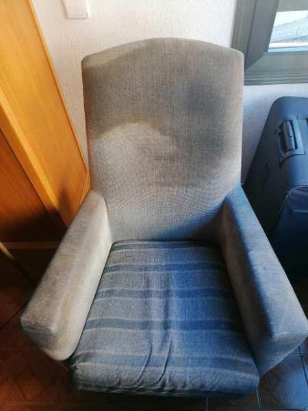 Result: a clean, sanitised, and odour-free armchair, visibly renewed and pleasant to use again.