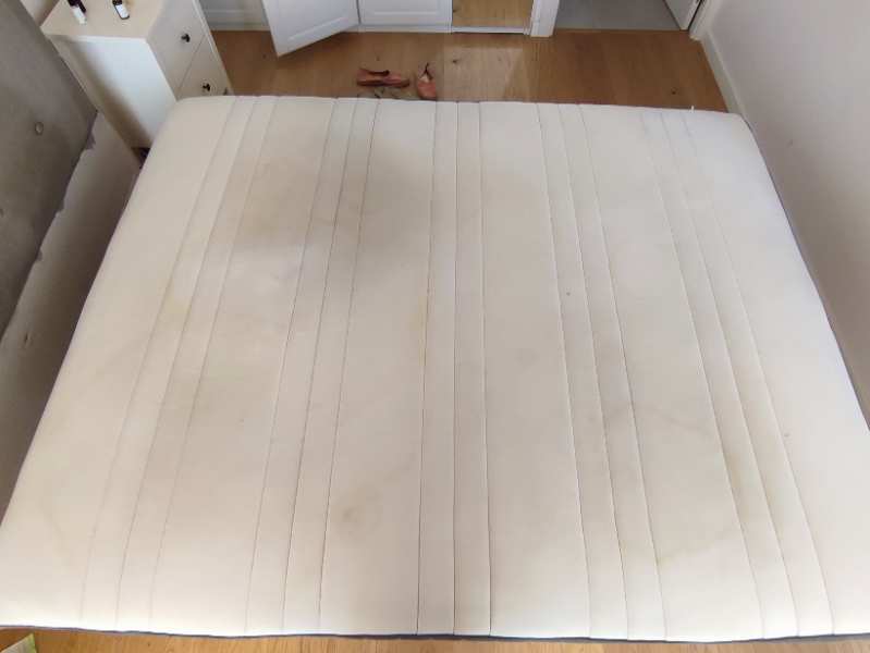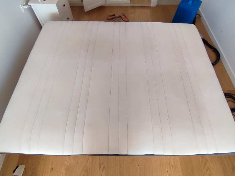 Using the injection–extraction system, we applied an enzymatic treatment that breaks down organic residues, neutralises bacteria, and restores the mattress’s freshness.
